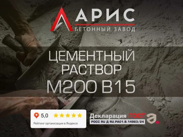 Цементный раствор М200 (B15) заказывают для работ, где по проекту требуется повышенная прочность и важно исключить разброс свойств, возникающий при приготовлении на объекте. Мы – производитель: завод «Арис» изготавливает готовый раствор по гост 28013–98, выдаёт паспорт качества на партию и обеспечивает поставку в Можайске. Минимальная отгрузка – от 1 м3, поэтому можно купить объём под конкретную захватку без излишков.