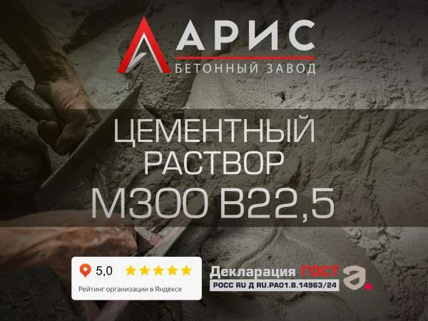 Цементный раствор М300 (B22,5) используют, когда по проекту требуется повышенная прочность и необходимо получать партию с повторяемыми параметрами, подтверждёнными документами. Мы – производитель: завод «Арис» выпускает готовый раствор по гост 28013–98, проводит контроль перед отгрузкой и оформляет паспорт качества на каждую поставку. Минимальный заказ – от 1 м3, поэтому можно купить объём под конкретный этап работ без хранения избыточных остатков на объекте.